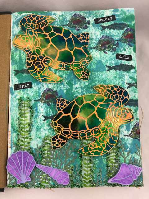 Now, at first glance I'm sure some of you will say "wait a minute, this looks like under the sea, not at the beach" which could be true. However, when people say Beach, the first things that go through my mind and "what turtles can I find", and "what cool shells can I find". Chances are you won't find me relaxing on a towel with a drink that has it's own private umbrella in it, I will be looking for wildlife/sea life. Whether I'm at a man made beach on a lake or river, or at the ocean it doesn't really change for me. I loved being able to showcase this fun side of my personality in this months challenge and I hope you enjoyed it too.