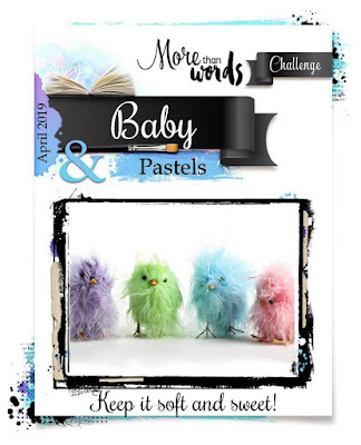 This months More Than Words challenge was especially fun with me as both of my little brothers became father's within a week of each other earlier in the year. So, I had been planning on what to do with the baby pictures, and this challenge provided just the thing. Now I'm not usually a pastel person so that was the harder part lol.